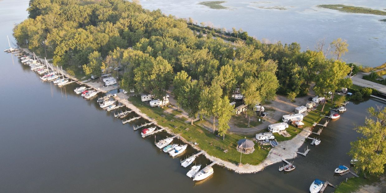 Having over thirty years and 100,000 miles of sailing experience, they felt this was the ideal location for large and small sail boats. This location allows for deep water access (22 feet) into Lake Erie from the well protected waters of the River Raisin. The River Raisin Marina has 72 deep water wells. There is also a launch ramp with plenty of parking for cars and trailers. The Marina & Campground boasts 28 acres of park-like setting for boat owners and campers to enjoy. Located just east of I-75, exit 14, at 2502 East Elm Ave, the Marina is ideally located for minimal driving and maximum boating and camping.